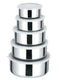Setul contine 5 caserole metalice, de marimi diferite, cu diametru cuprins intre: 10,12,14,16 si 18 cm